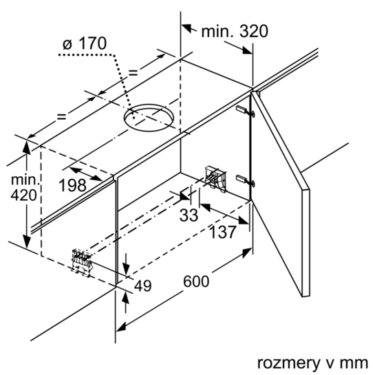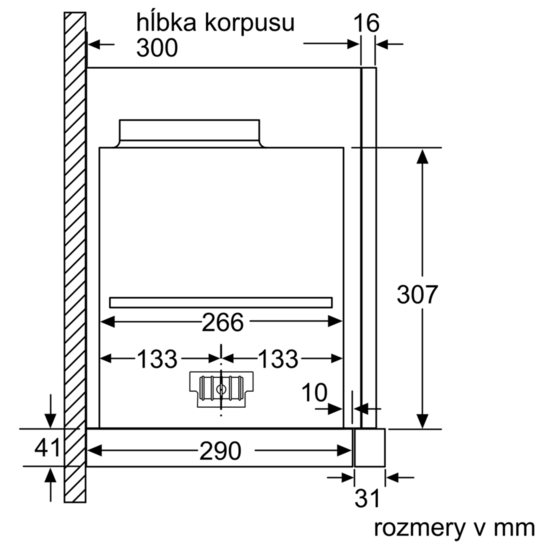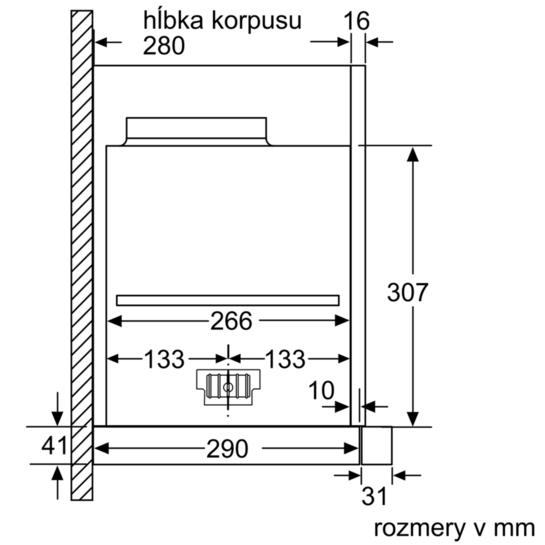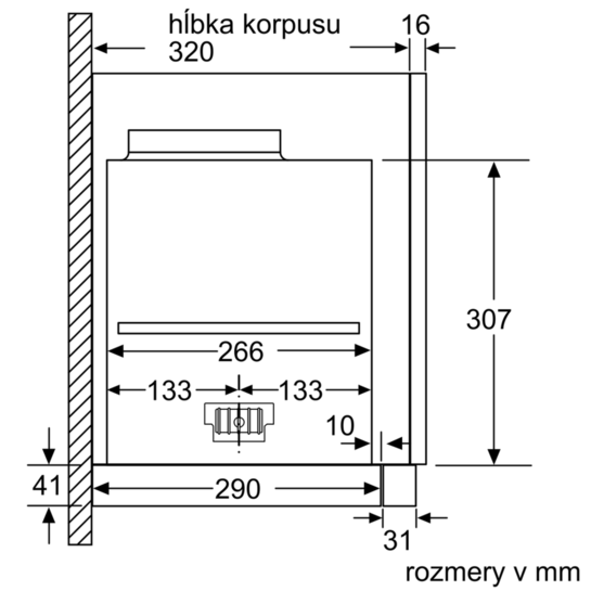 - rozmery pre zabudovanie (VxŠxH): 337 x 524 x 290 mm