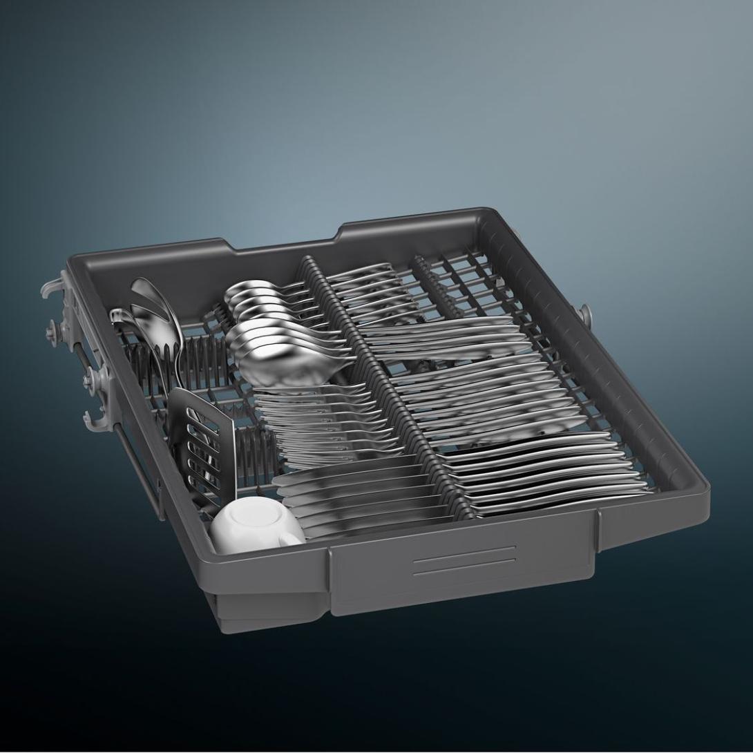 Príborová zásuvka varioDrawer ponúka dodatočnú úroveň pre ukladanie riadu. Vďaka svojmu špeciálnemu designu neponúka priestor len na príbory, ale tiež na naberačky, šalátové servírovacie príbory a dokonca aj menšie porcelánové šálky na espresso. A keďže v dolnom koši teraz nie je kôš na príbory, je teraz k dispozícii priestor pre celkom 14 obedových súprav riadu.