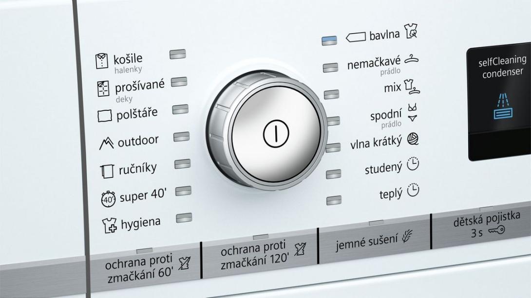 Kondenzátor sušíčky bielizne sa pri každom sušiacom cykle čistí automaticky. A to hneď niekoľkokrát. Výsledkom je čistý kondenzátor bez vlákien, ktorý udržuje konštantne nízku spotrebu energie a maximálnu účinnosť.