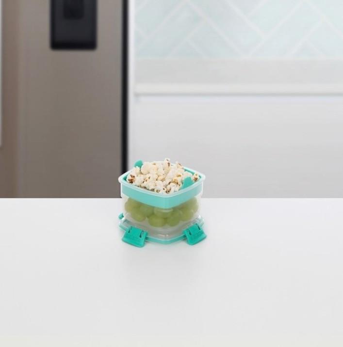Sistema® 400 ml Snacks TO GO™ je skvelou voľbou pre všetkých, ktorí hľadajú praktický a štýlový spôsob, ako si vziať desiatu na cesty. Odnímateľný zásobník umožňuje oddelenie rôznych druhov potravín, takže si môžete vychutnať čerstvú a chutnú desiatu kedykoľvek a kdekoľvek. Stohovateľný tvar zaisťuje maximálne využitie priestoru v špajze, chladničke a mrazničke. Ľahko uzatvárateľné klipy Sistema® a pružné tesnenie udržujú potraviny dlhšie čerstvé.