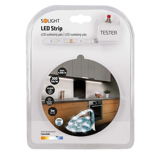 SOLIGHT WM50-20T LED SVETELNY PAS S TESTROM, 5M, SADA S 12V ADAPTEROM, 4,8W/M, IP20, STUDENA BIELA