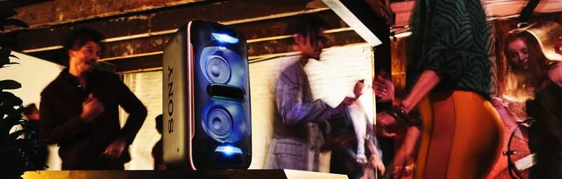 Zvukový systém GTK-XB72 má v prednej časti, po bokoch a v hornej časti vstavané viacfarebné LED svetelné čiary a stroboskop na dosiahnutie väčšieho efektu. Ťuknite v aplikácii Fiestable vo svojom smartfóne na možnosť párty svetiel a svetelné efekty zvukového systému sa začnú zobrazovať aj na displeji telefónu – displej bude blikať a meniť farby do rytmu hudby. Počet pripojených smartfónov nie je obmedzený, čo so sebou prináša jedinečný spoločný zážitok.