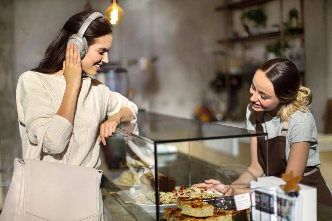 Komunikujte bez zloženia slúchadiel z uší. Položením ruky na puzdro znížite hlasitosť a môžete sa hneď pustiť do konverzácie.