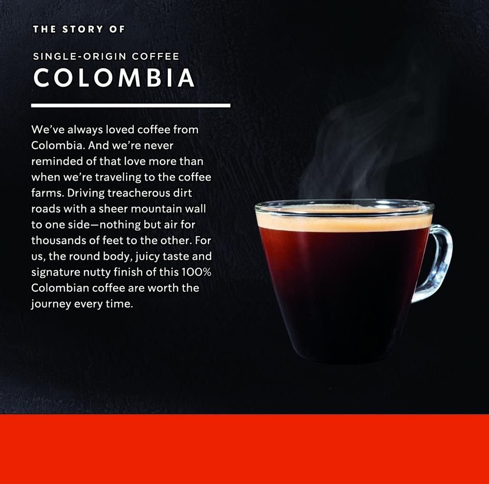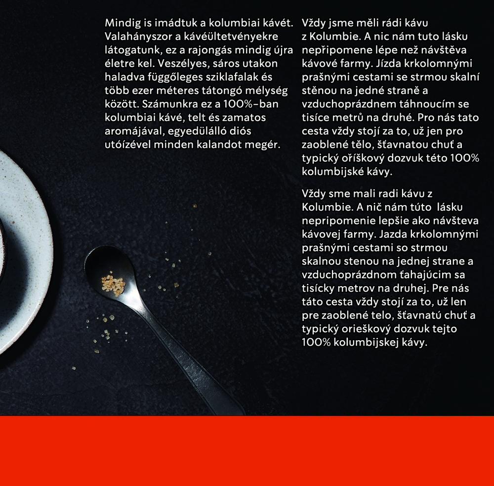 - Táto 100 % kolumbijská káva má zaoblené telo, šťavnatú chuť a typický orieškový dozvuk