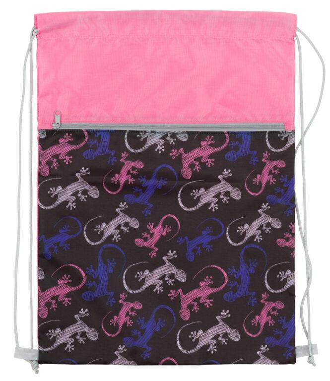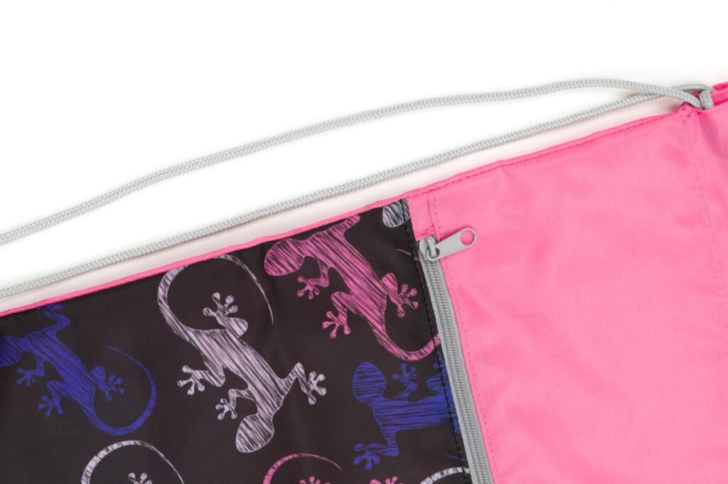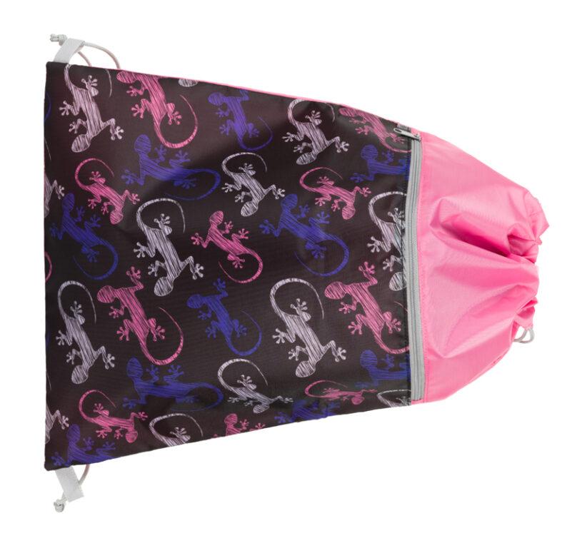 Zaťahovacia šnúrka spojená so spodnou časťou premení vrecko na malý batôžtek na chrbát.