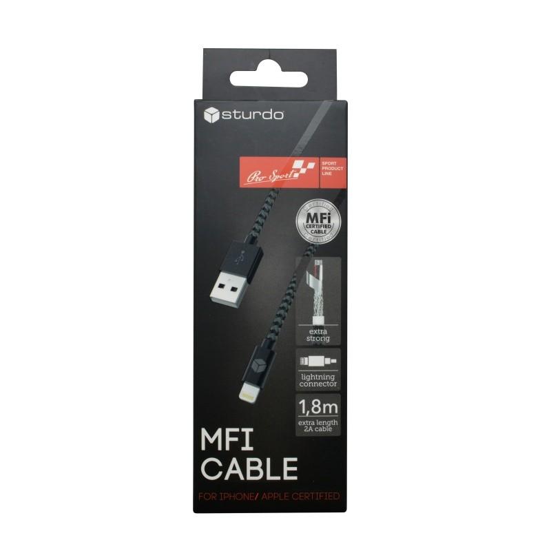 STURDO KAB-0083-STU-LIGHT LIGHTNING KABEL 2A (MFI) PLETENY 1,8M, CIERNY