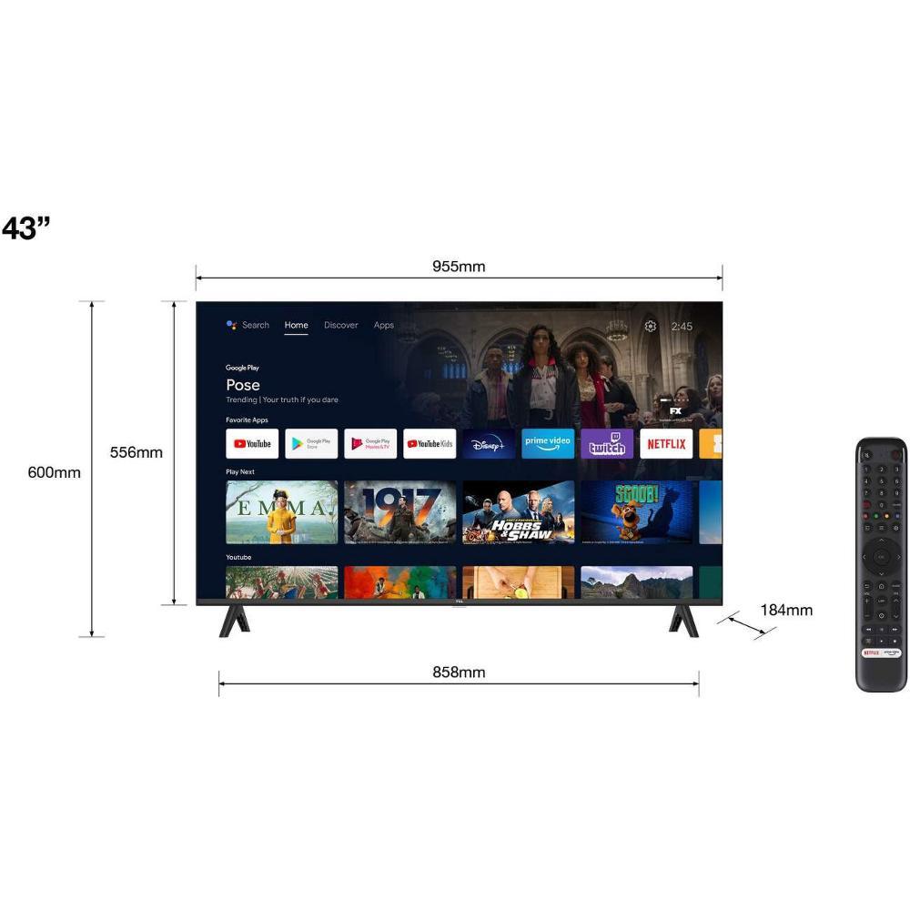 Smart TV, Uhlopriečka: 43 ", Rozlíšenie: 1920x1080, Rozlíšenie: 1920x1080, OS TV: Google TV, Spotr. ener. v režime HDR: 65 kWh,