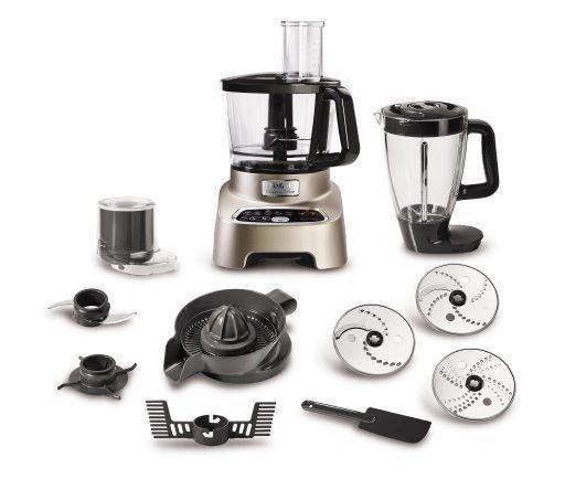 Food processor DoubleForce je vybavený širokou škálou špecializovaných a účinných nástrojov: nôž z nerezovej ocele na sekanie a krájanie všetkých druhov surovín; tri vymeniteľné disky z nerezovej ocele na hrubé strúhanie/porciovanie, jemné strúhanie/plátkovanie a škrabanie/trhanie zeleniny alebo syra; nádoba mixéra na mixovanie chutných polievok, štiav, smoothie pod .; hnetací hák na prípravu akéhokoľvek ľahkého aj hutného cesta; sekáčik na jemné sekanie cibule, cesnaku, byliniek a pod .; metla na šľahanie krémov pre dezerty a emulgáciu omáčok, napríklad majonézy; lis na citrusy k príprave čerstvo vytlačených citrusových džúsov.