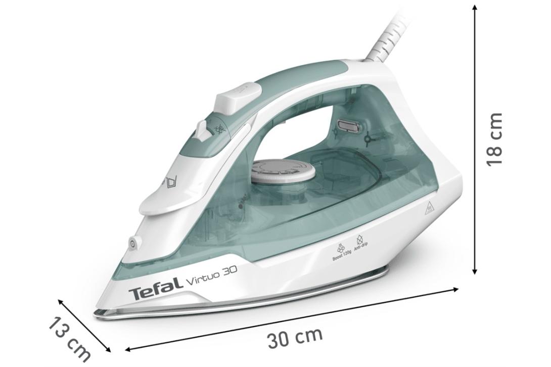 Nežehlíte veľké hromady bielizne, ale občas potrebujete vyžehliť nejakú košeľu alebo šaty? Napařovacia žehlička Tefal Virtuo 30 FV2C42E0 je ideálnym pomerom ceny a výkonu pre pohodlné žehlenie. Disponuje keramickou nepriľnavou žehliacou plochou, ktorá má perfektne kĺzavý povrch po celú dobu životnosti a je odolná voči poškriabaniu, a pre uľahčenie žehlenia je vybavená možnosťou kropenia bielizne. Poteší aj možnosťou vertikálneho naparovania pre odstránenie záhybov priamo na ramienku.