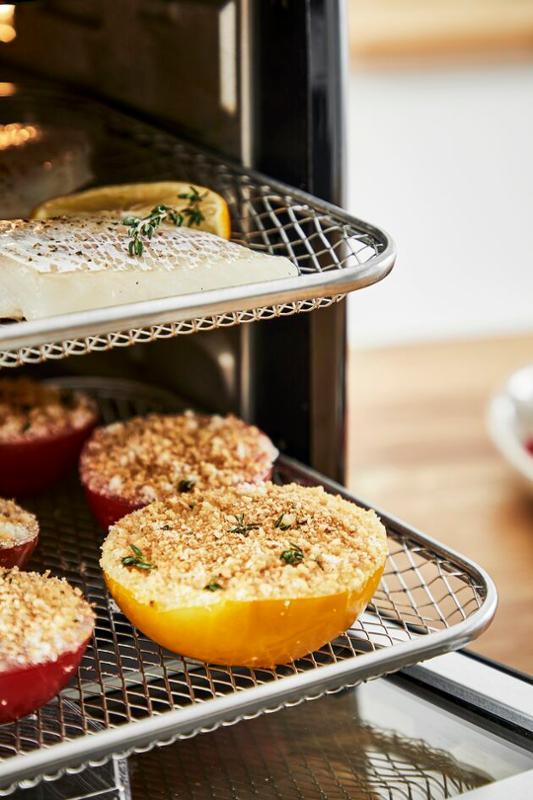 7 častí príslušenstva zaručuje univerzálne použitie a prípravu rôznorodých receptov: 2 mriežky, fritovací kôš, podnos na odkvapkávanie, rošt na kurčatá, mriežka s rukoväťou a podstavec na grilovanie s odnímateľnou rukoväťou