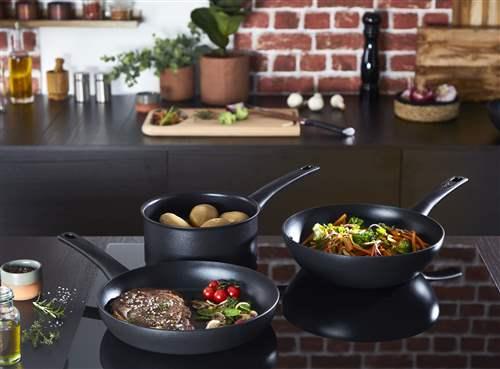 Objavte kuchynský riad navrhnutý tak, aby spĺňal vaše každodenné potreby pri varení, s vysoko účinným nepriľnavým povrchom z oboch strán, pre jednoduché čistenie a praktické varenie.
