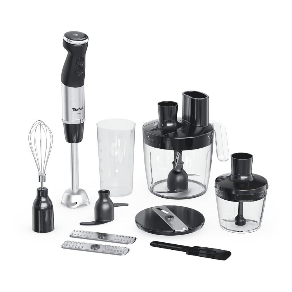 S tyčovým mixérom Quickchef+ značky Tefal si užijete mimoriadny výkon a maximálnu kontrolu. Technológia nožov Powelix a príkon 1000 W pre neuveriteľne hladké výsledky a až o 30 % rýchlejšie mixovanie*, aby boli suroviny krémové a rovnomerne rozmixované aj v prípade tých najtvrdších surovín. Objavte nekonečnú všestrannosť s kompletnou kuchárskou súpravou: food processor 5 v 1, kompaktný sekáčik a šľahacia metla. Navyše 20 variabilných rýchlostí + nastavenie turbo na ľahko použiteľnom ovládači.
