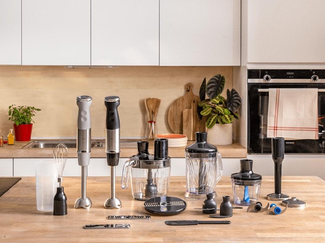 ![]() | Ucelené kuchynské riešenie Náš kompaktný sekáčik uľahčuje sekanie a mletie. Dokonalú domácu majonézu si môžete pripraviť pomocou šľahacej metly a na ľahšie mixovanie poslúži odmerná nádoba. |