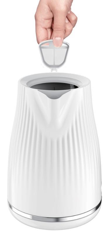 - Vyberateľný odvápňovací filter pre ľahké čistenie: Vyberateľný odvápňovací filter uľahčuje čistenie kanvice, súčasne čistí vodu a prispieva k lahodnejším nápojom.