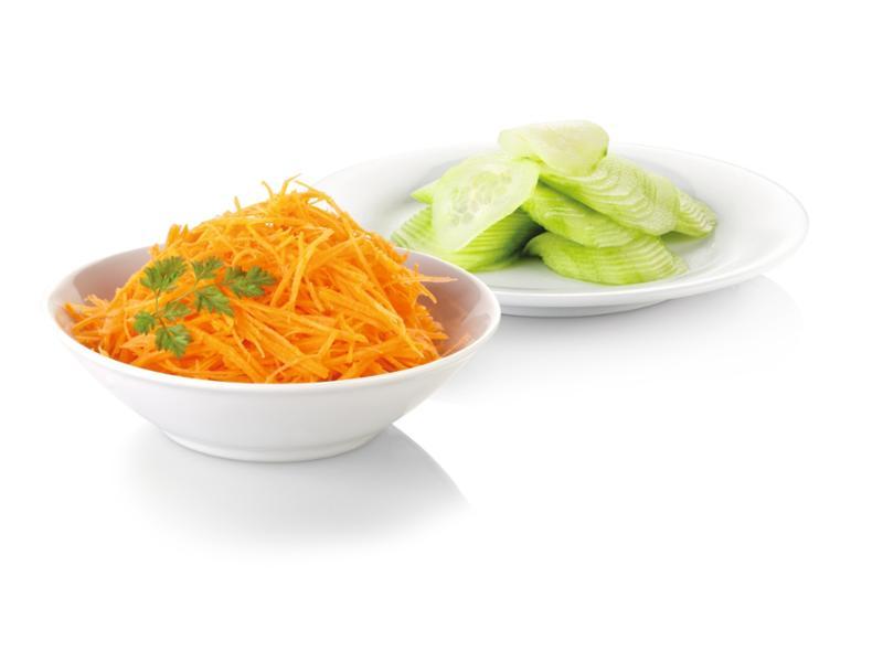 - Tento nový mlynček na mäso vďaka 5 strúhacím nadstavcom dokáže spracovať aj rôzne druhy zeleniny, syry alebo ovocie: 2 nadstavce na krájanie na tenké alebo hrubšie plátky, 2 nadstavce na strúhanie na jemno alebo na hrubo a jedinečný nadstavec na prípravu výborného vlašského šalátu.