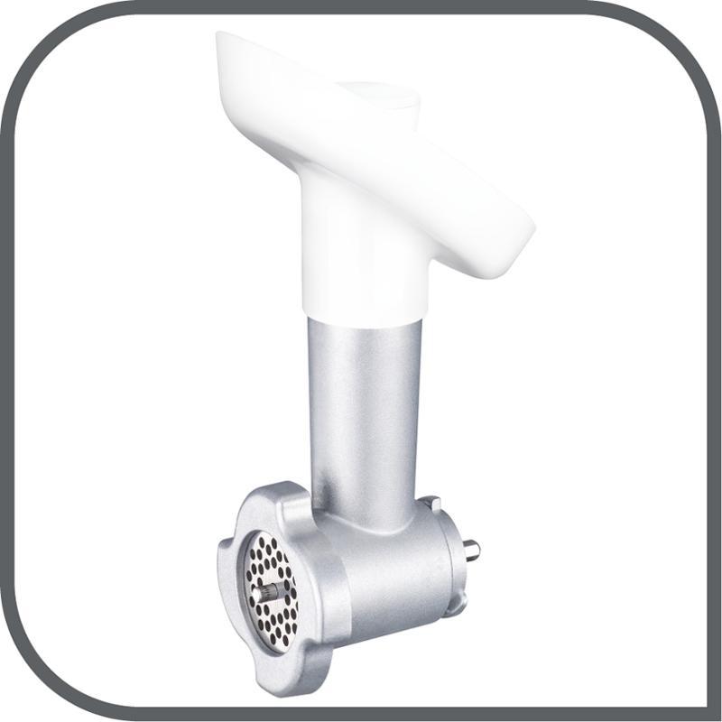 - Obsahuje mlynček na mäso ako nadstavec: Mlynček na mäso obsahuje dve mriežky z antikorovej ocele na stredne hrubé a hrubé mletie.