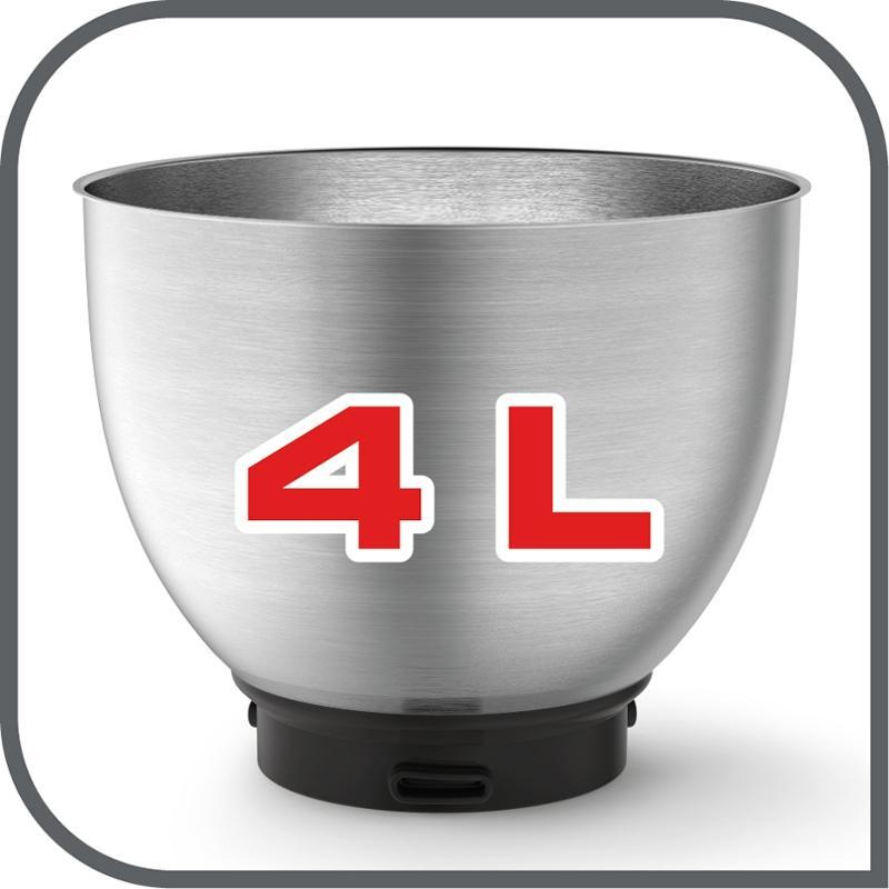 - Elegantná antikorová misa: Robot Wizzo je vybavený 4 l antikorovou misou s krytom proti vyšplechnutiu, ktorá vystačí pre celú rodinu. Môžete v ňom pripraviť až 40 mafinov alebo 3 pizzy (priemer 28 cm, silné cesto), ktoré potešia vašich príbuzných aj priateľov!