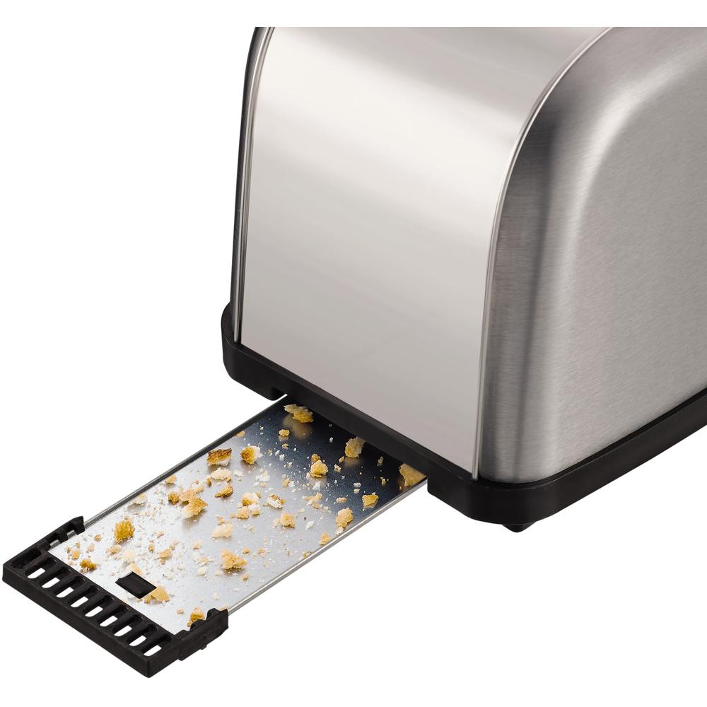 Hriankovač s povrchom z nehrdzavejúcej ocele, ultra kompaktná veľkosť do každej kuchyne, 6 stupňov toastovania, 2 priehradky na 2 veľké toasty, 2 široké štrbiny s funkciou automatického centrovania toastu
