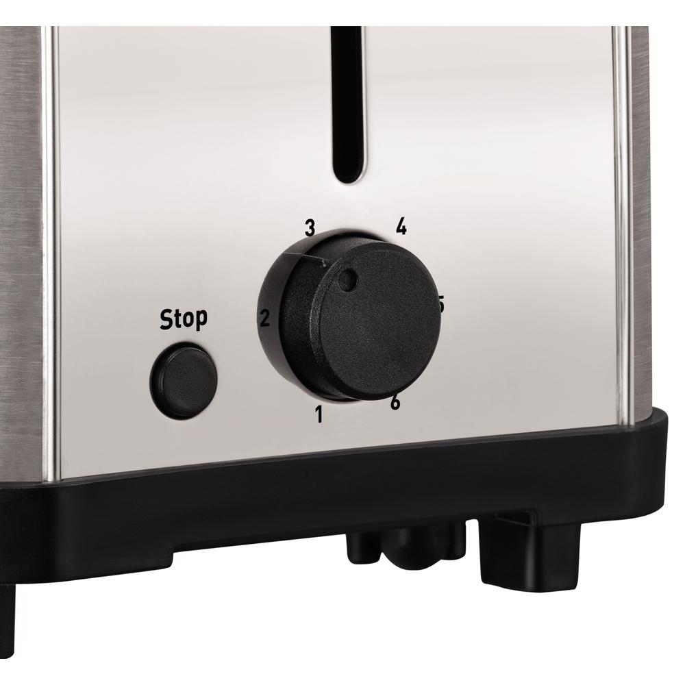 - 2 široké štrbiny s funkciou automatického centrovania toastu - tenký aj široký toast bude vždy rovnomerne prepečený z oboch strán,