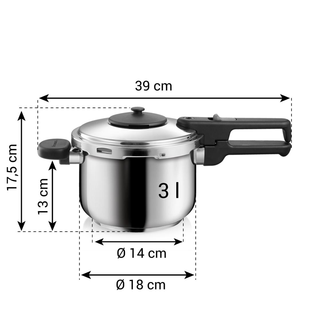 Tlakový hrniec, Materiál:plast, nerezová oceľ, Dĺžka (cm):39, Výška (cm):17,5, Priemer (cm):18, Objem (l):3, Umývanie v umývačke:nie