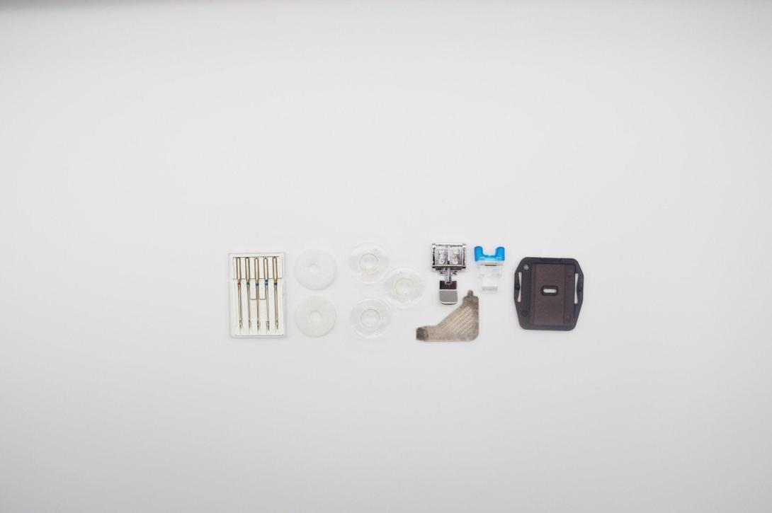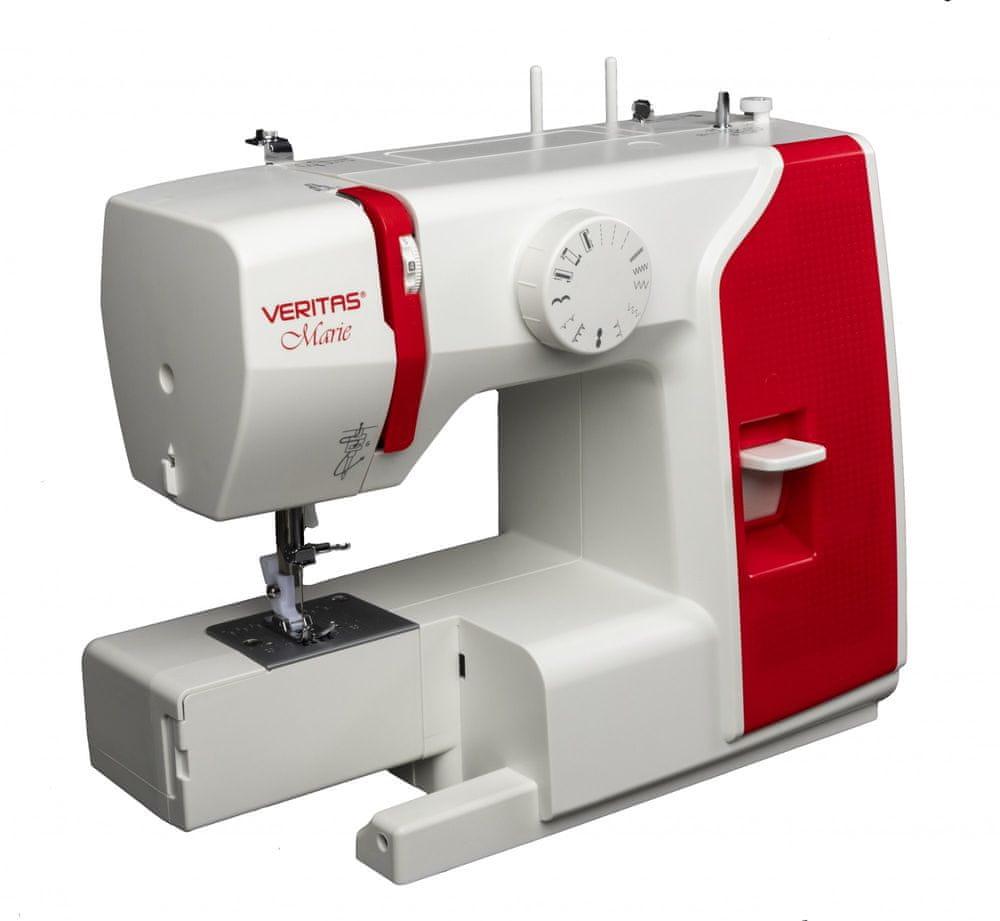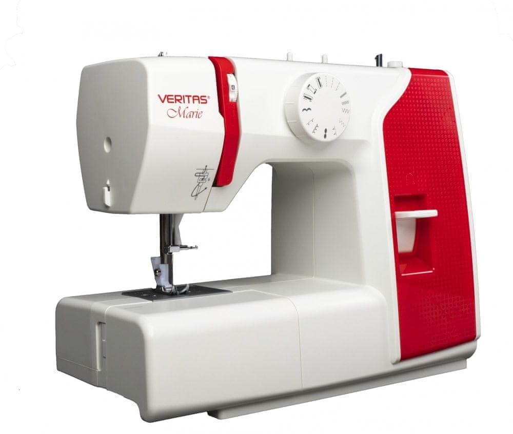 Šijací stroj, 13 šicích programov, 4-krokové šitie gombíkovej dierky, Schopnosť prešiť aj silné materiály, Vsadzovanie zipsov, Vstavaný orez nite