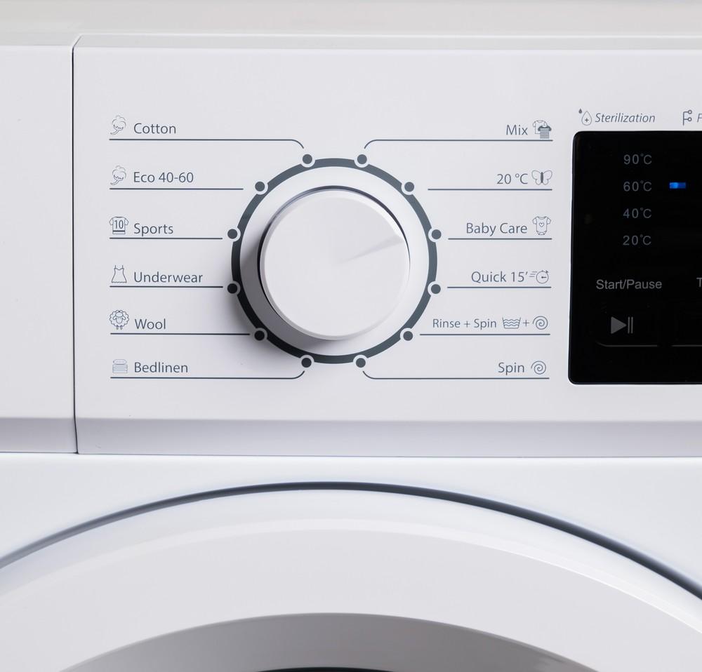 Sterilizačná funkcia bubna prispieva k sviežosti a čistote bielizne. Ovládací panel práčky s centrálne umiestneným otočným tlačidlom na výber programu a veľkým displejom pomáhajú spustiť proces prania iba v troch jednoduchých krokoch.