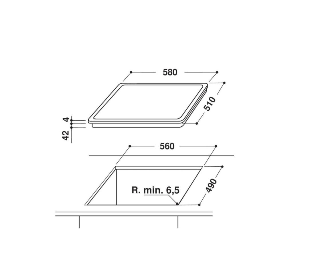 - Rozmery otvoru pre zabudovanie (vxšxh) 42x560x490 mm