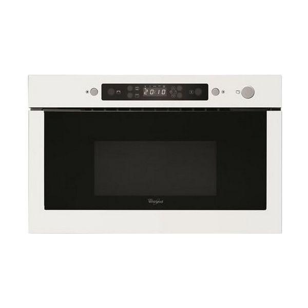 Mikrovlnná rúra Mini Built-in AMW 439 WH, Elektronická, funkcie: zapekanie Crisp , gril, rozmrazovanie, mikrovlnný ohrev a ich kombinácie, výkon mikrovĺn 750 W, výkon grilu 700 W, čiernobiely grafický displej, farba: biela, neutrálny dizajn, ľavé závesy dverí