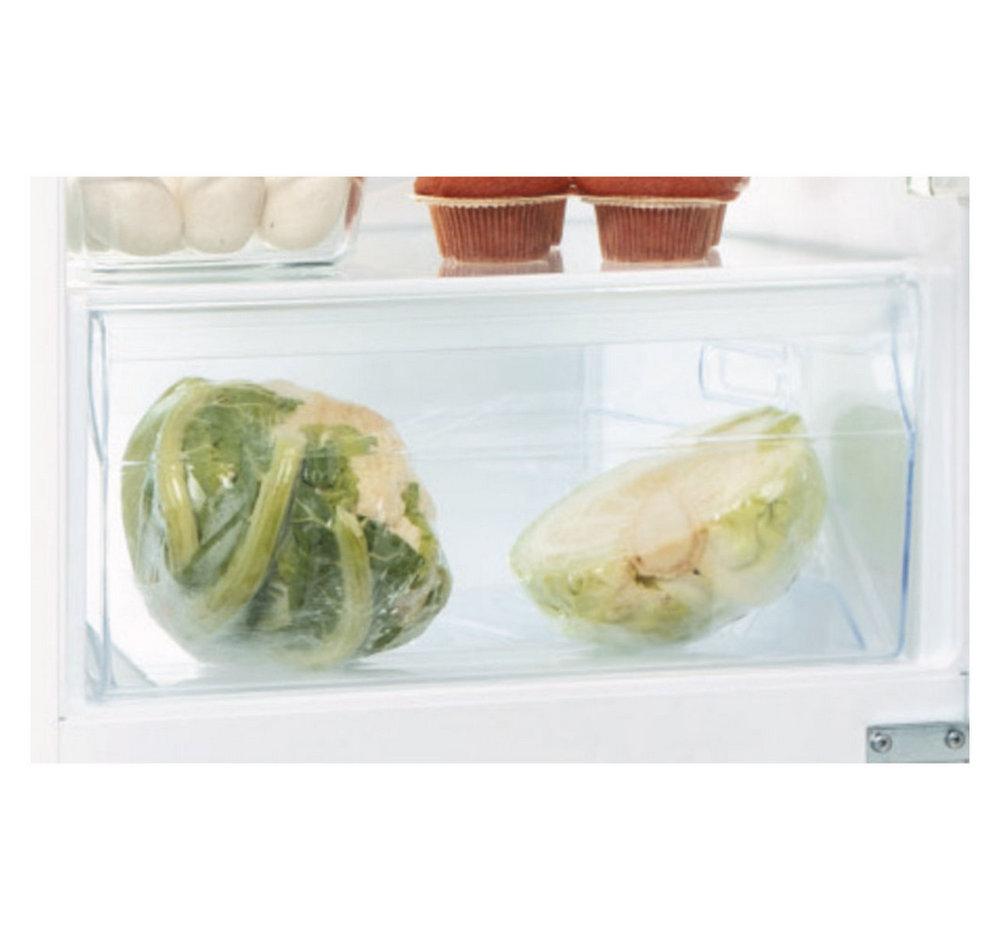 - Praktické prestaviteľné sklenené poličky a priečinky vo dverách chladničky. Veľká zásuvka na ovocie a zeleninu.
