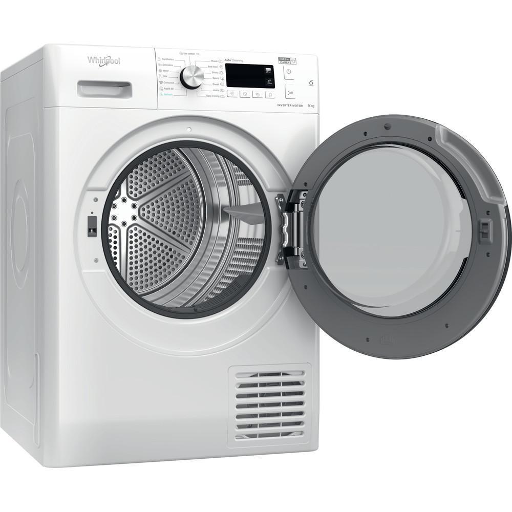 Sušička bielizne, Kapacita bubna: 9 Kg, Systém sušenia: kondenzácia + tepelné čerpadlo, Vstavaný displej: Áno, Hlučnosť (sušenie): 64 dB.