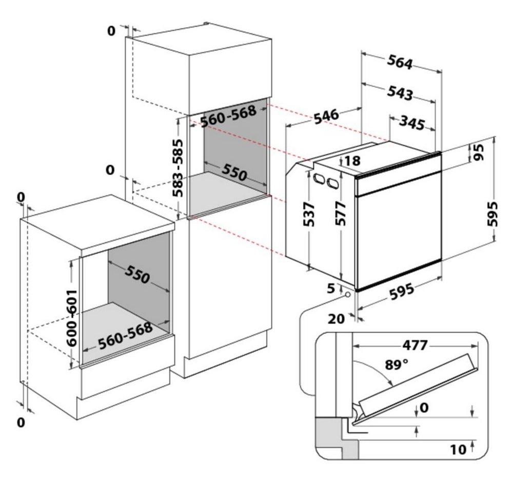 - Rozmery otvoru pre zabudovanie (vxšxh) 600x560x550 mm