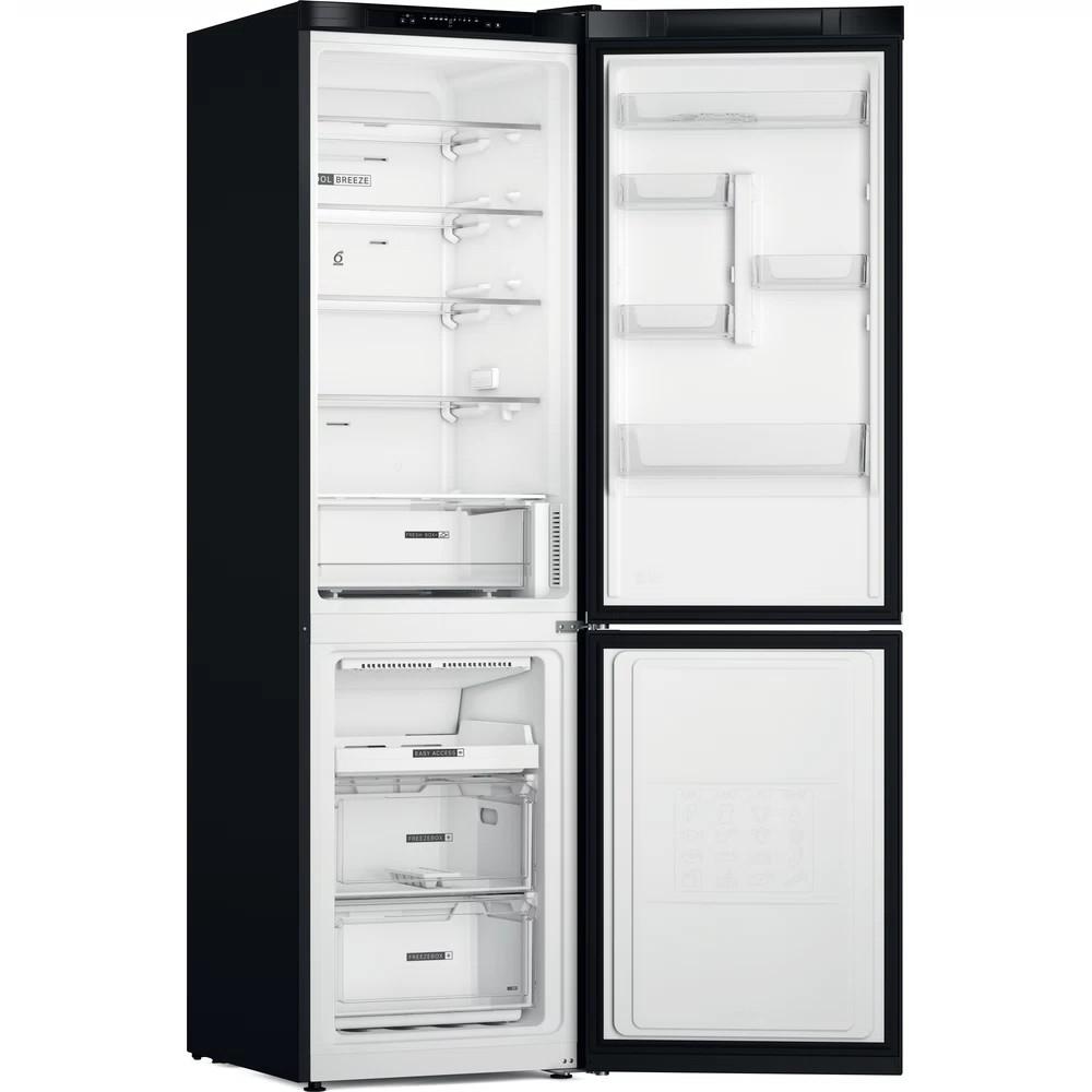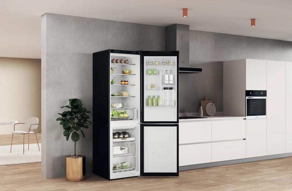 Výhody tejto voľne stojacej kombinovanej chladničky Whirlpool: čierna farba. Beznámrazová technológia No Frost, ktorá účinne zabraňuje tvorbe ľadu v mrazničke znížením úrovne vlhkosti. Vysoký spotrebič, ktorý vyhovie potrebám vašej rodiny. Sklenené poličky, ktoré poskytujú pevnosť aj eleganciu. Senzory 6. ZMYSEL, ktoré automaticky znižujú teplotu vo vnútri spotrebiča po pridaní potravín, čím znižujú spotrebu energie.