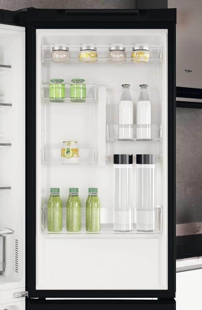 Bezpečné skladovanie. Táto chladnička Whirlpool poskytuje dokonalý priestor pre skladovanie vašich fliaš, so špecializovaným priečinkom na fľaše vo dverách chladničky.