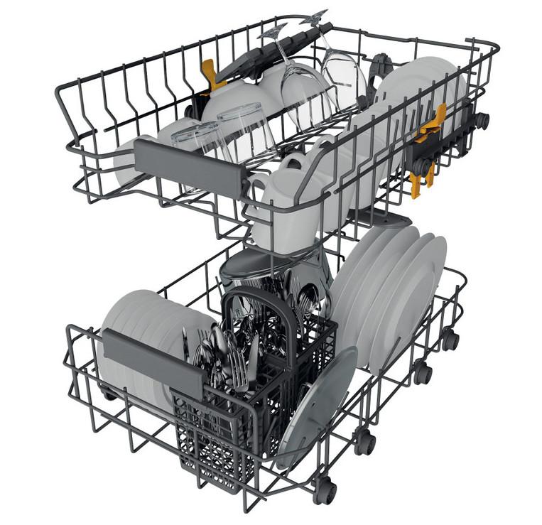 Nastaviteľný horný stojan. Nastaviteľný horný regál umývačky riadu vám umožní v prípade potreby vytvoriť dodatočný priestor a bez námahy umiestniť neobvykle tvarované predmety.