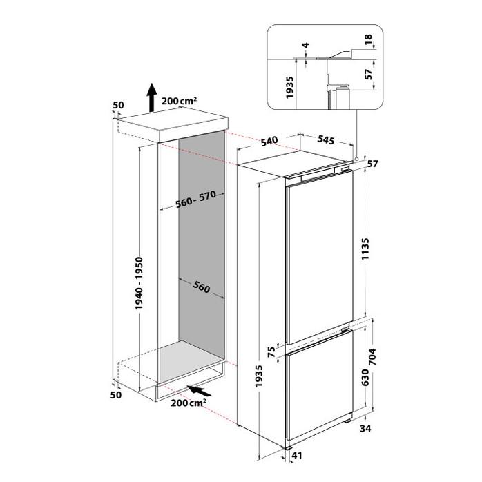 Vstavaná kombinovaná chladnička, Chladnička (hrubý objem (l): 228, Mraznička hrubý objem (l): 79
