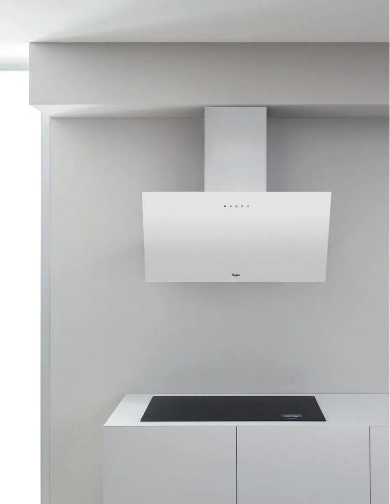 Dekoratívny stenový odsávač pár AWHVP 63 LT W vo vyhotovení čelné biele sklo s dotykovým ovládaním, šírka 60 cm.