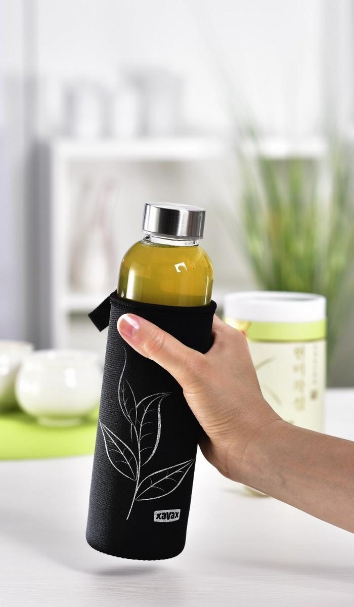 XAVAX 111233 SKLENENA FLASA NA NAPOJ, 500 ML, SO SITKOM A NEOPRENOVYM OBALOM