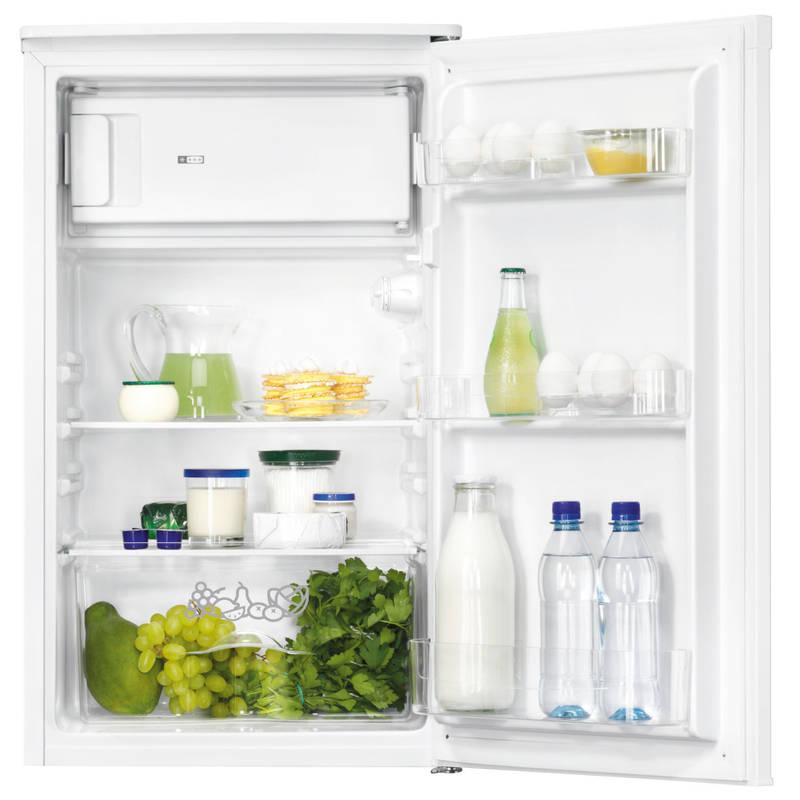 Zanussi ZRG10800WA. Dizajn skrine: voľne stojace, Farba: biela, Uchytenie dverí: Pravý. Celkový čistý objem: 96 L, Celkový hrubý objem: 99 L, Klimatická trieda: ST, N. Čistá kapacita chladničky: 87 L. Umiestnenie mrazničky: Umiestnený hore, Čistá kapacita mrazničky: 9 L, Hodnotenie Star: 4*. Trieda energetickej účinnosti: A+, Celková spotreba: 80 watt, Ročná spotreba energie: 165 kWh