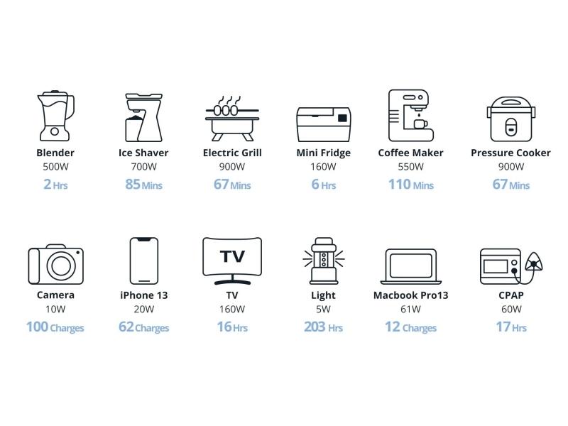 Vďaka vysokej kapacite 607 Wh a výkonu 1 000 W môžete ľahko napájať domáce spotrebiče a zároveň nabíjať malé zariadenia, ako sú smartfóny. Ide o prenosný zdroj energie, ktorý je veľmi užitočný v rôznych situáciách, ako sú výpadky prúdu, mobilné bývanie alebo kempovanie.