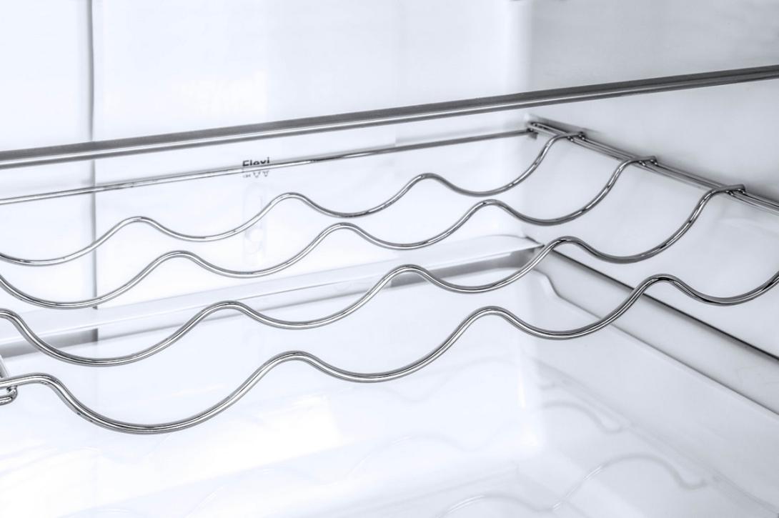 V chladiacej časti nájdete zvláštne zónu pre ovocie a zeleninu, a tiež zónu pre ryby a mäso. Miesto pre vaše potraviny poskytujú 4 police z bezpečnostného skla, z ktorých tri sú výškovo nastaviteľné. Nechýba ani praktická polička na fľaše.